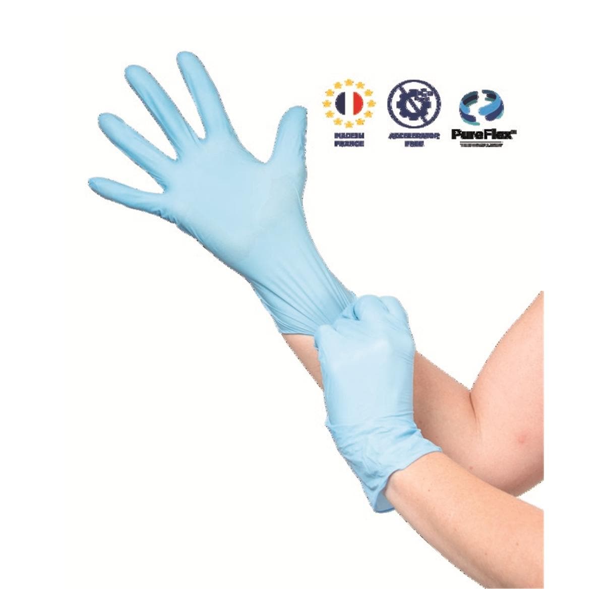 Gants nitrile sans poudre bleu clair (Made in France)