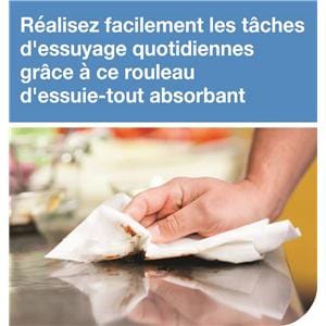 Des rouleaux d'essuie-tout ménagers traditionnels blancs pour tout essuyer. Pack de 2 rouleaux d'essuie-tout gaufrés, 64 formats (24 x 24 cm), 15,36 m. Double épaisseur (2 x 22 g). Certifié contact alimentaire