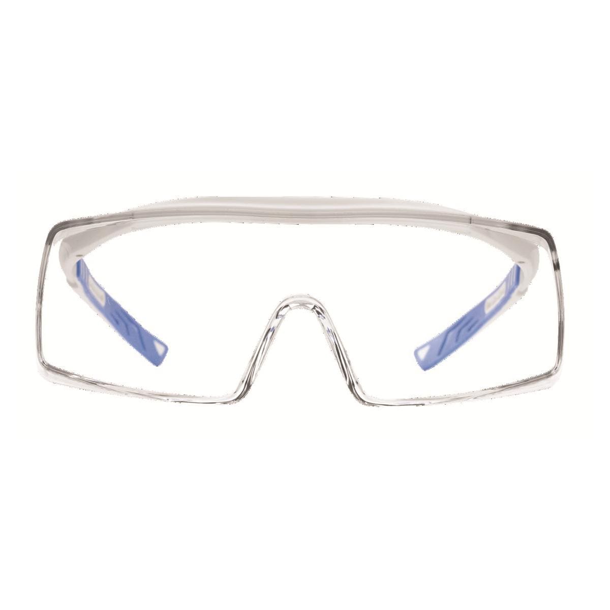 Surlunettes transparentes pour opérateur, au design carré et enveloppant.